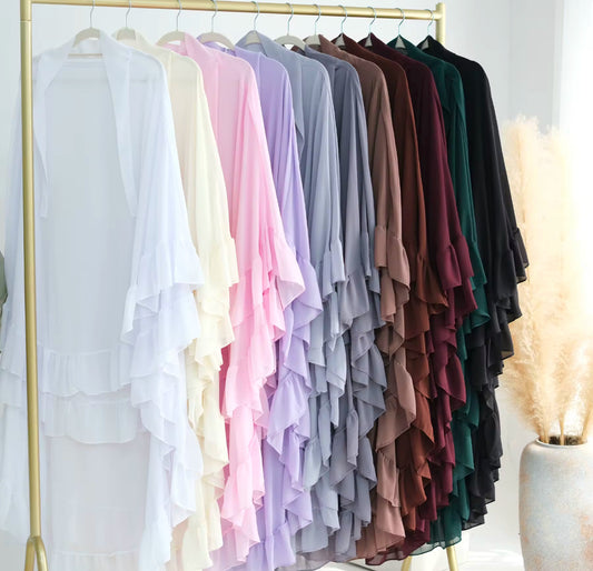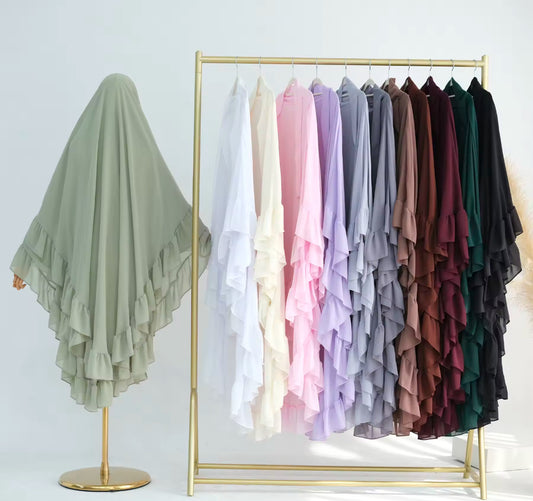 Onze elegante tweelaagse khimar is gemaakt van lichte, ademende chiffon die soepel valt en volledige bedekking biedt zonder in te leveren op stijl. Ideaal voor dagelijks gebruik of speciale gelegenheden. De khimar is comfortabel en verkrijgbaar in diverse stijlvolle kleuren.