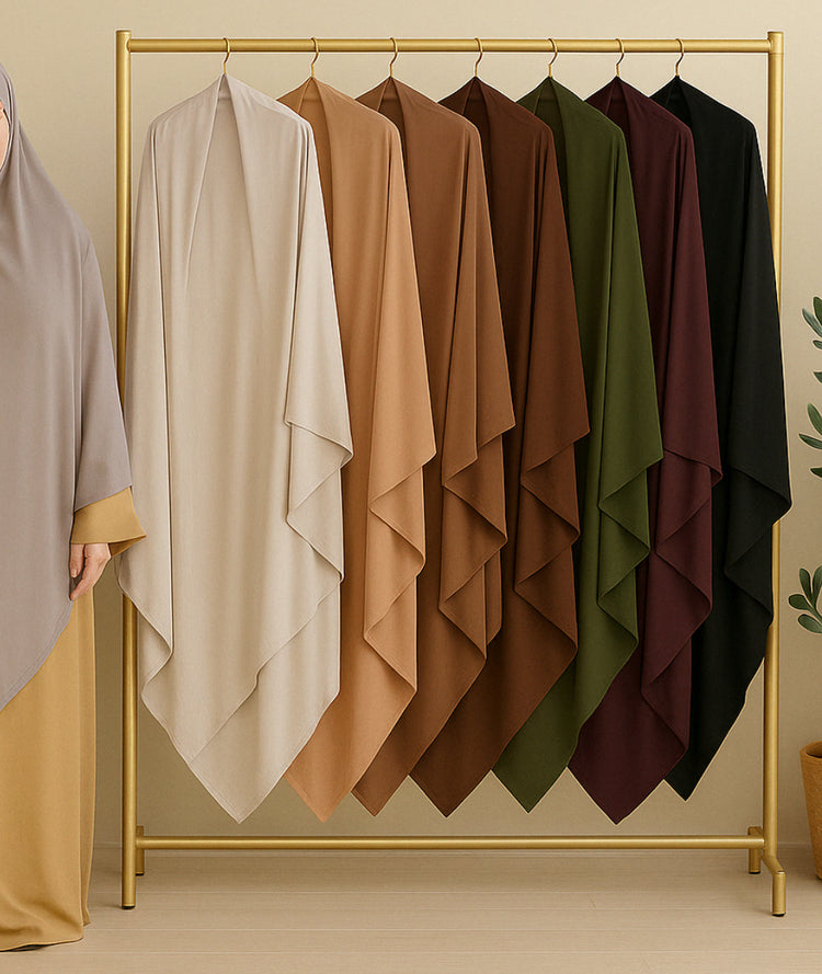 Met zijn eenvoudige, maar elegante design is de Jersey khimar perfect voor elke gelegenheid. Of je nu op zoek bent naar een dagelijkse, makkelijke bedekking of iets voor een speciale gelegenheid, deze khimar biedt de perfecte balans tussen stijl en functionaliteit.