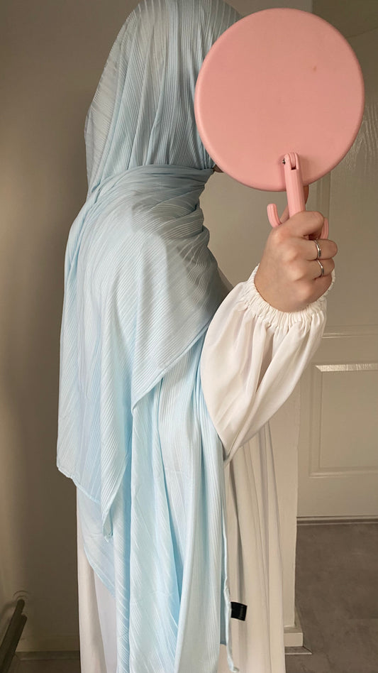 Gemaakt van jersey met zachte ruffled details – deze hijab valt moeiteloos over beide schouders en geeft jou die luxe uitstraling, elke dag opnieuw.